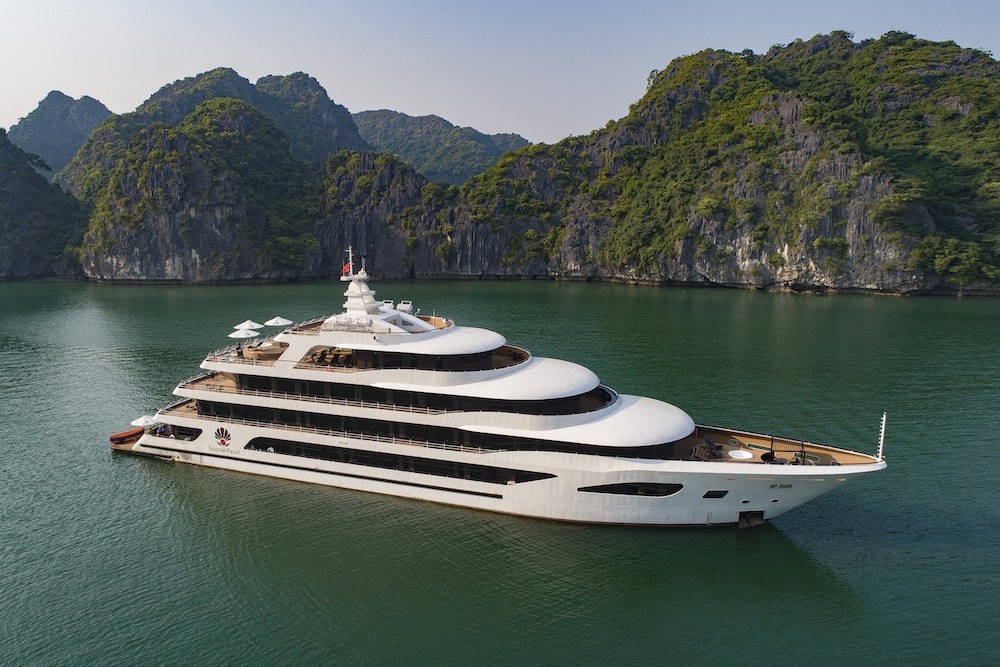 Scarlet Pearl es uno de los cruceros más modernos en la bahía de Ha Long, con un diseño único en forma de catamarán. Los huéspedes disfrutarán de habitaciones lujosas y bien equipadas, saborearán una deliciosa comida de fusión asiática-europea y degustarán exquisitos cócteles en el bar a bordo del crucero. A bordo, encontrarán comodidades de lujo como un gimnasio y spa, jacuzzi y un elegante bar. También hay una exhibición y venta de productos de perlas a bordo.